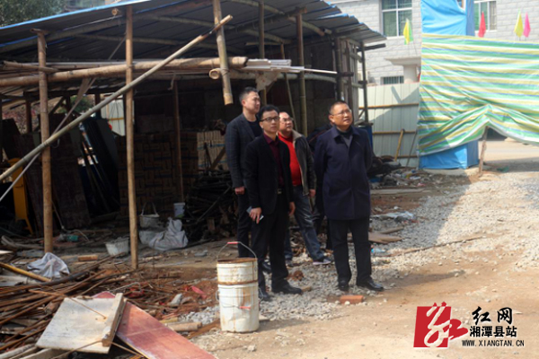 肖燎(前排左一)一行在施工现场实地查看