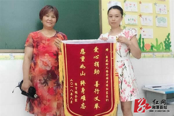 红网湘潭县分站7月2日讯(通讯员 葛茵)6月30日下午,谢宇聪小朋友的母亲带着锦旗来到了杏花幼教,感谢杏花幼教全体师生对聪聪的关心与支持。